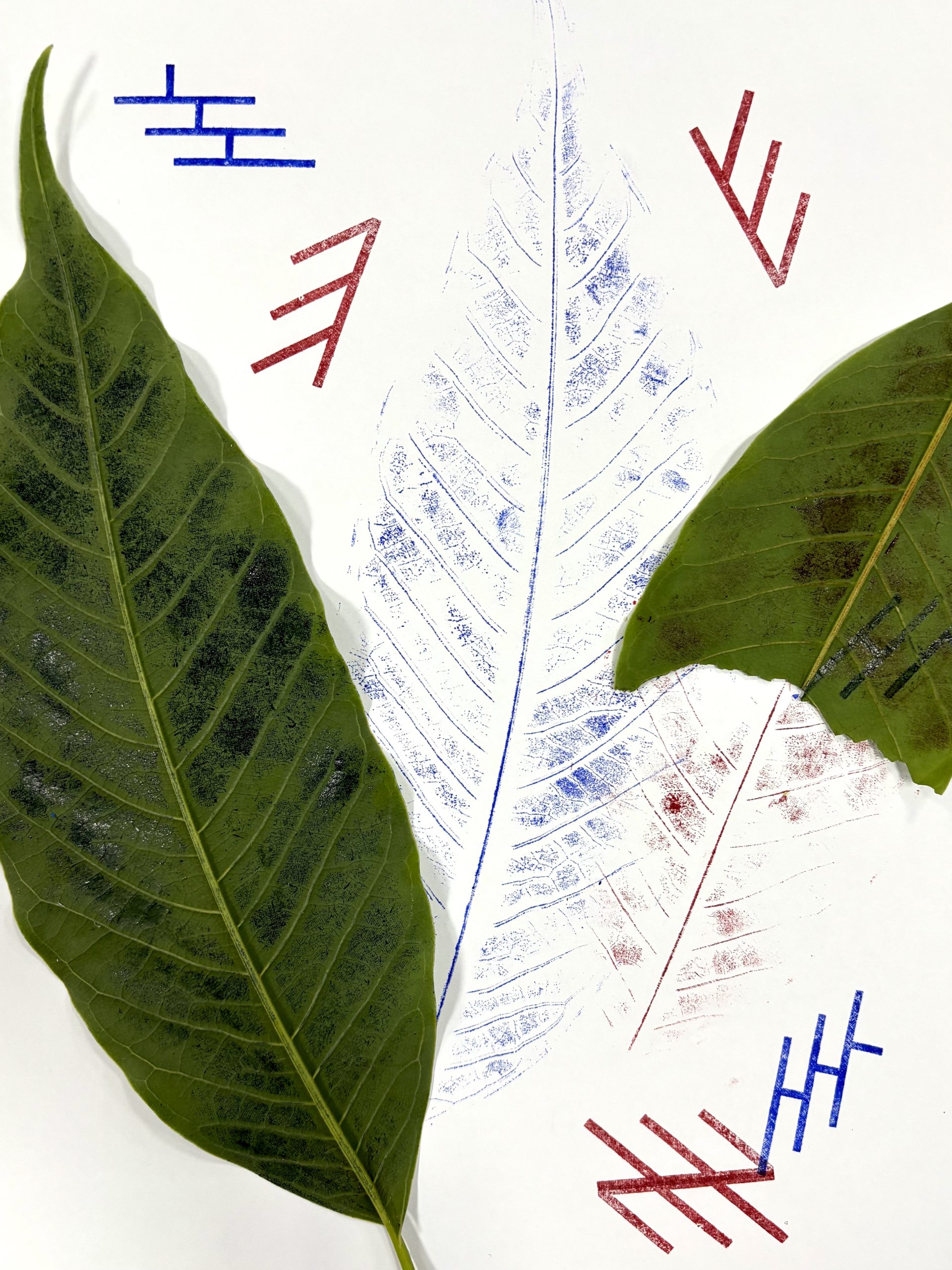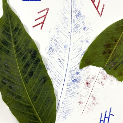 Criação de carimbos com elementos naturais, como folhas e galhos.